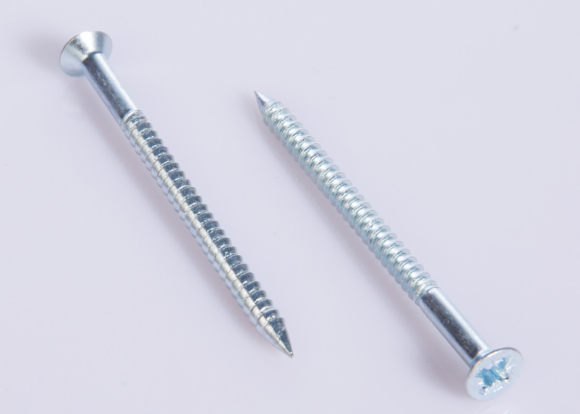 The Nail Screw (featuring the specialized “Umbrella Thread” or “Sawtooth Thread”) is a hybrid fastener that combines the speed of a nail with the holding power of a screw. Designed primarily as the metal core for Nylon Hammer-in Anchors, this Nail Screw allows for rapid “Hammer-Set” installation, significantly reducing labor time on large-scale framing and battening projects.