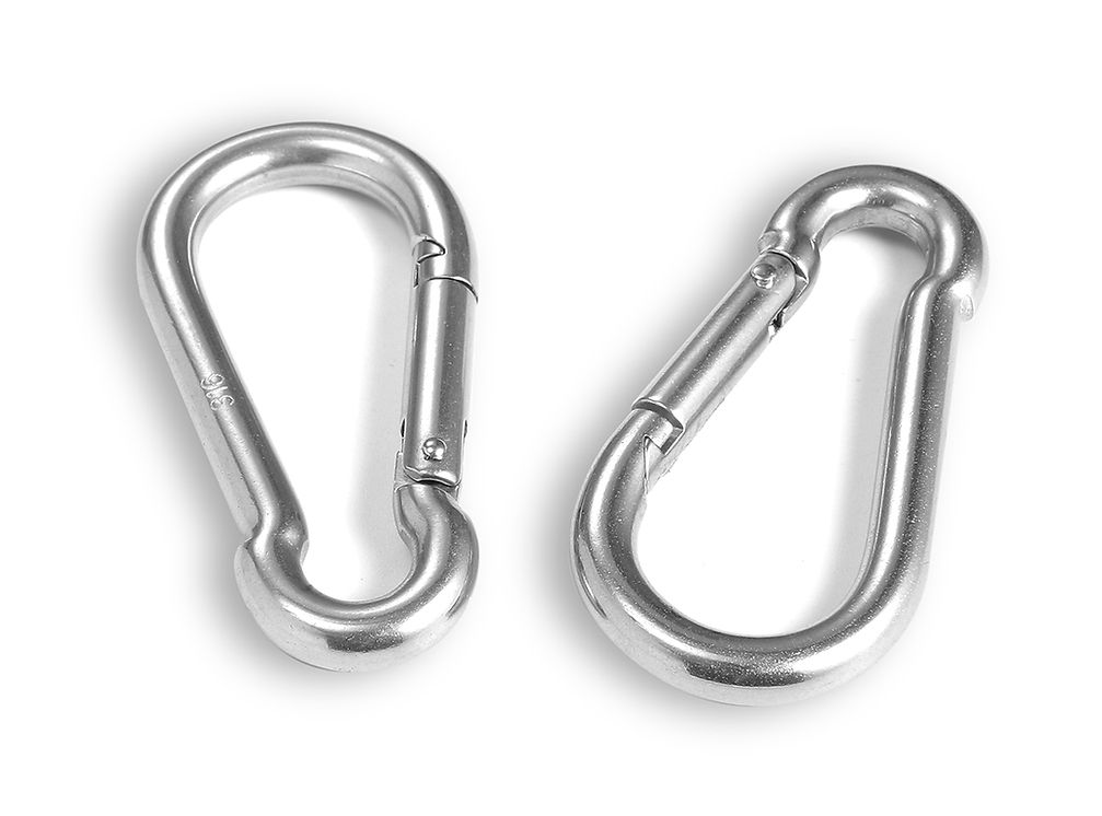 Stainless Steel Snap Hook (DIN 5299 C). A4/A2 marine grade carabiner clip with spring gate.