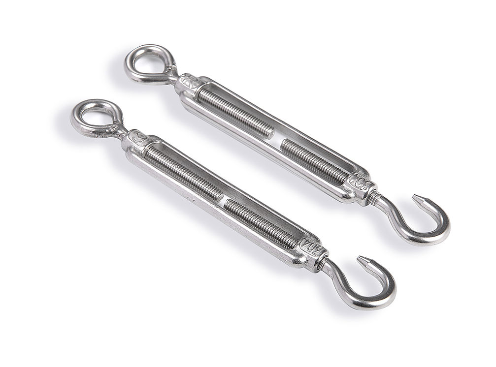 Product Overview: Forged from premium Stainless Steel A4 (316) or A2 (304), this tensioner offers superior rust resistance compared to galvanized iron turnbuckles. The unique Hook and Eye design provides the best of both worlds: the “Eye” end provides a secure, permanent attachment point for wire rope thimbles, while the “Hook” end allows for quick detachment from wall plates or pad eyes.